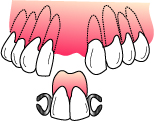 治療内容両隣の歯を支えにしてなくなった歯を回復する方法。歯がなくなった場合に、残っている歯に金属のとめがねをかけることによって、歯がなくなった部分を回復する方法で、取り外し式。全部の歯がなくなった場合の入れ歯のこと。総義歯または、フルデンチャーとも呼ぶ。歯を失ったあごの骨に人工歯根を埋め込んで、天然歯のかわりをさせる方法。